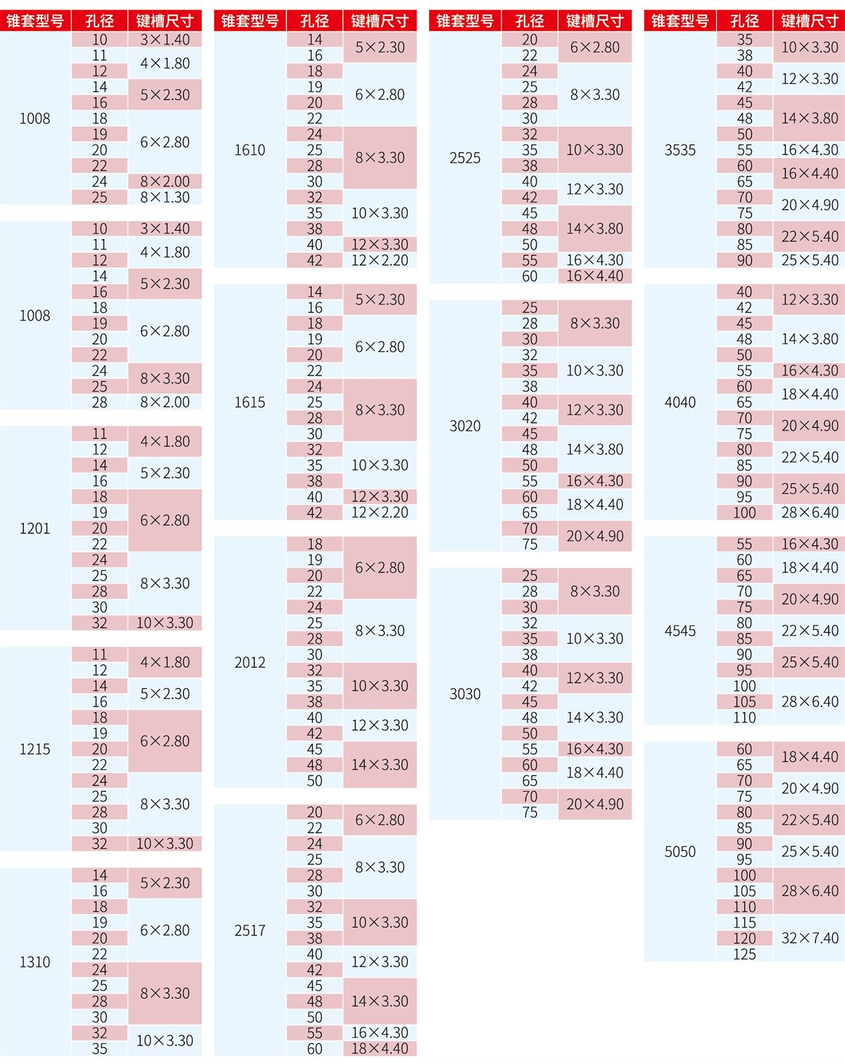 錐套美標孔徑