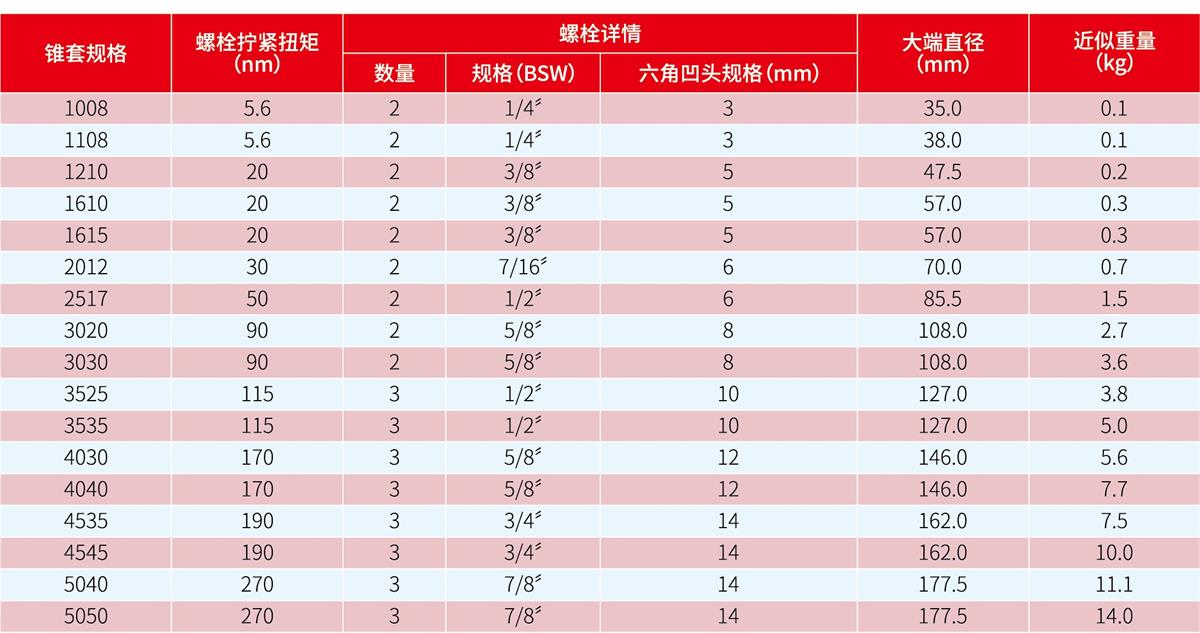 錐套美標(biāo)孔徑